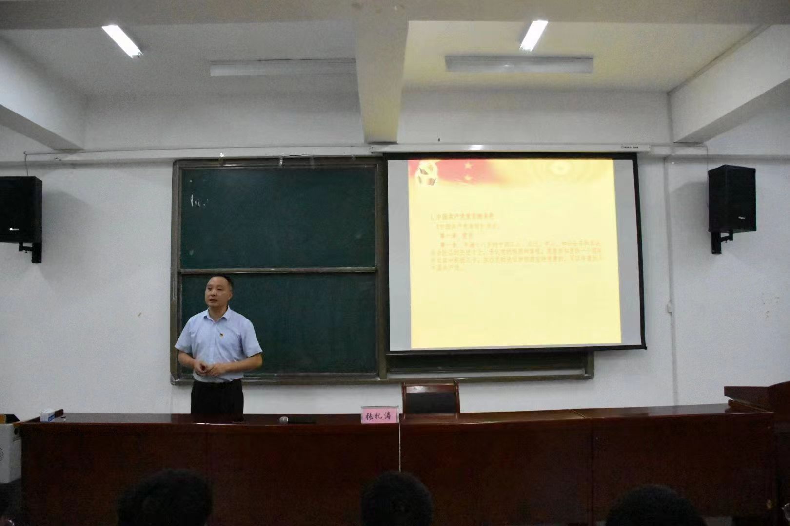 9月13日晚,j9国际站开展了2022级新生入党启蒙教育。党总支副书记张礼涛上了 “青春向党,永远跟党走”专题入党启蒙教育党课。因疫情防控原因,90余名专科新生作为新生代表参加本次入党启蒙教育党课,其他新生在班级由辅导员、班主任按党课内容同步进行。
