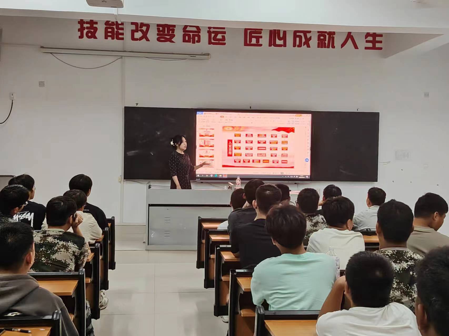 在课堂上,张礼涛首先带领大家学习了习近平新时代中国特色社会主义思想关于高职教育的相关内容和党的二十大、二十届三中全会精神。随后,张礼涛用丰富的党史知识深入浅出的阐述党的性质和宗旨,呈现了中国共产党一路走来的艰辛与伟大。最后,张礼涛向大家阐释入党的条件以及当代大学生应如何成为一名合格的党员:一要学会做人,牢记校风、校训,拿出自己的态度;二要端正入党动机,努力学习、认真实践、时刻反省、自我总结,从思想上、学习上、行动上积极向党组织靠拢,争取早日成为一名光荣的共产党员。