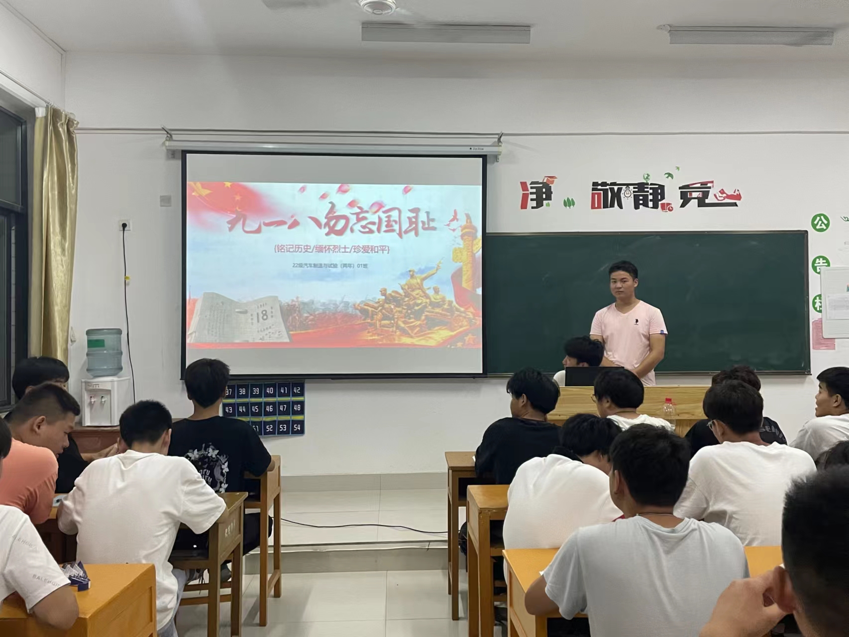 在活动上,各班班委向同学们讲诉了“九一八”事件,并组织同学们通过观看图片、视频、电影等来更深刻的了解“九一八”这段历史。