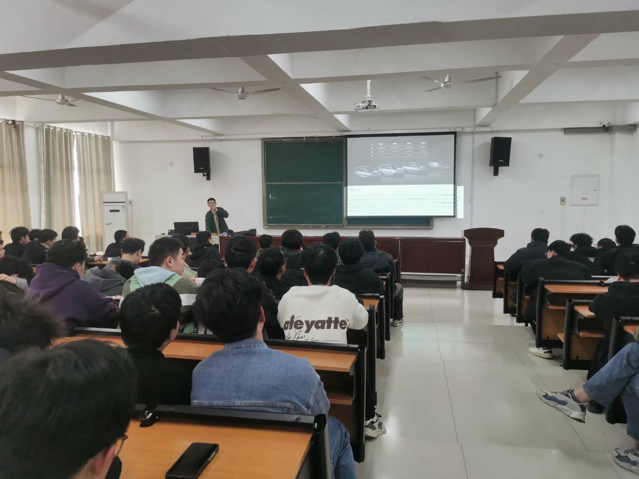 首先,杨健坤就当前汽车产业发展背景和前景趋势做了简要展望;随后介绍了理想汽车企业发展历程、产业布局和企业文化等内容,帮助学生了解企业发展概况;然后围绕我院汽车类专业特点,详细讲解了企业产品业务、对口岗位需求、工作和人才培养环境、职位待遇,使同学们在了解企业的同时,能结合自己所学专业,对未来实习就业形成更为成熟和清晰的目标规划。讲解结束后就大家反映的热点问题进行了交流互动,现场气氛活跃。