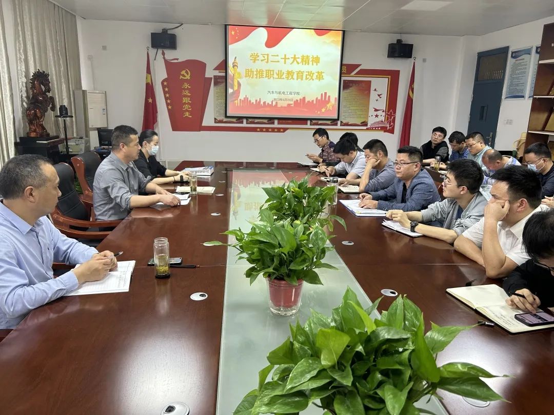 为深入学习贯彻党的二十大精神,发挥党建示范引领作用,5月23日下午,j9国际站院长吕争以“学习二十大精神 助推职业教育改革”为题在3002党员之家讲授党课。学院全体党员教职工参加了此次党课。