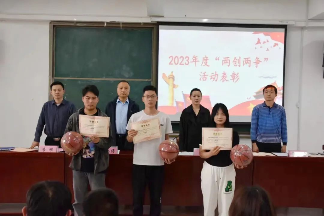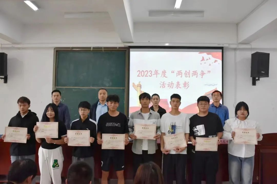 翟志方宣读获得“两创两争”表彰的文明班集体、文明学生、文明宿舍获奖名单。